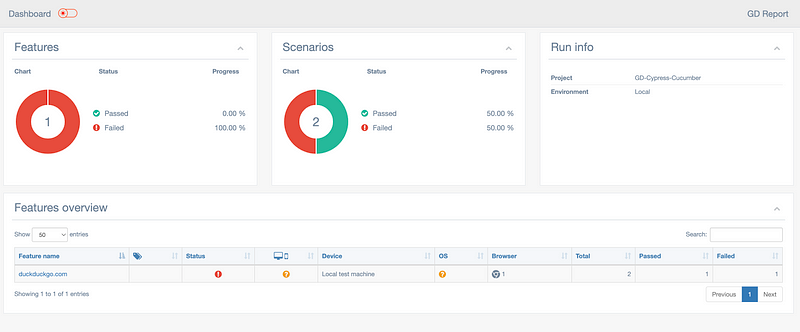 Once we have this json file, now we can use multiple-cucumber-html-reporter to generate the Cucumber html report using the generated JSON file