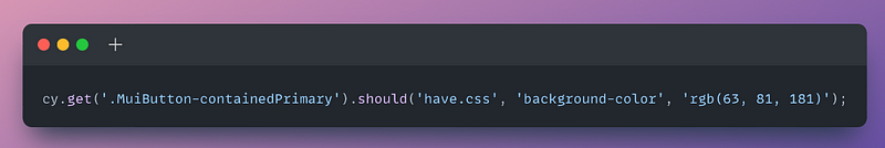 The Cypress code to get the background color will look like