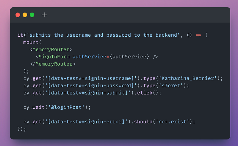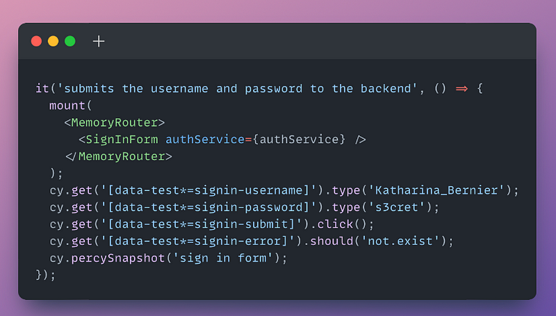 Our Cypress component test for Sign-in Form will look like this